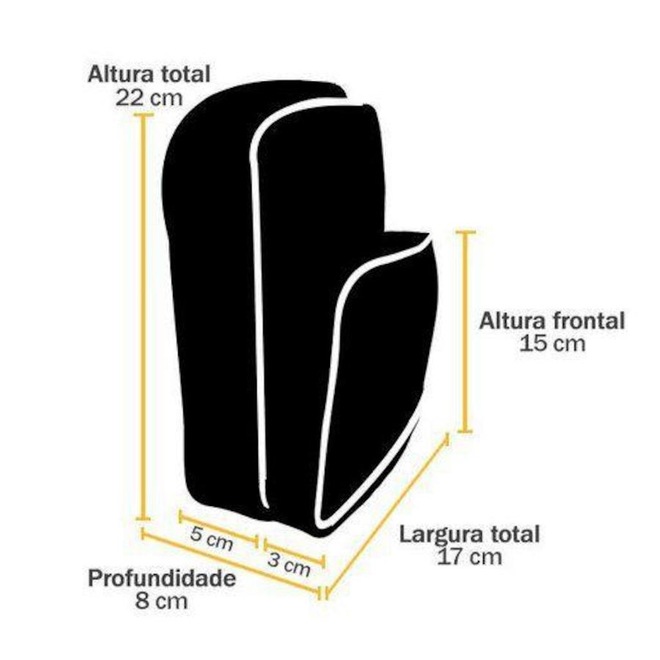 Bolso Maior: 22cm Altura / 17cm largura / 5cm Profundidade