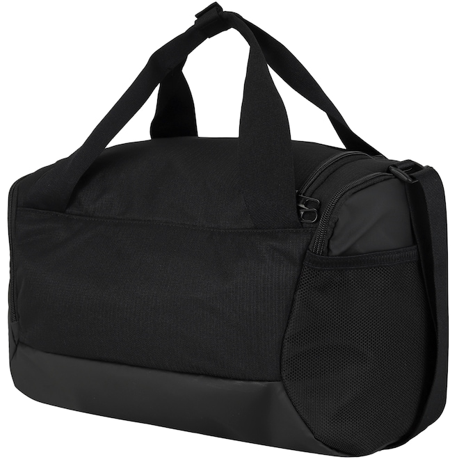 A bolsa Nike possui compartimento principal amplo com bolso em zíper e externo com bolsos laterais com zíper, porta calçados e divisória.