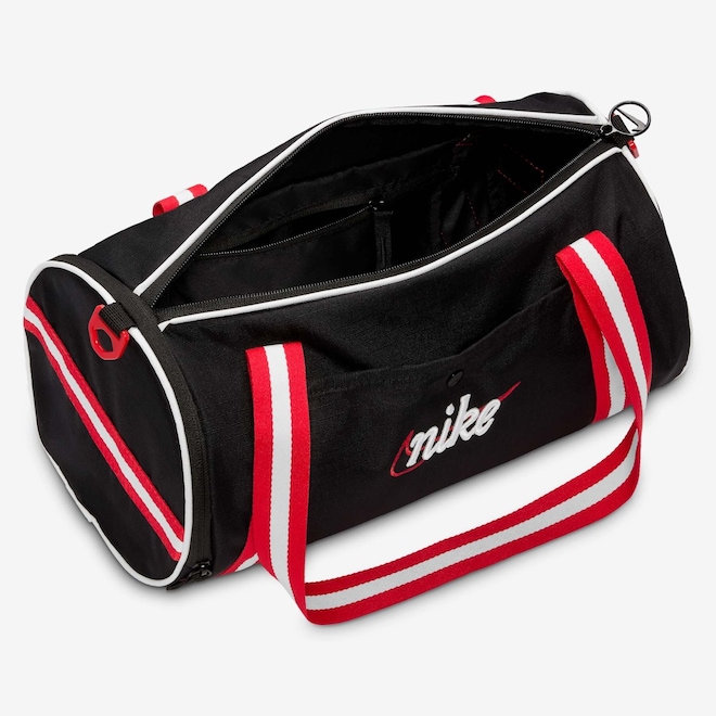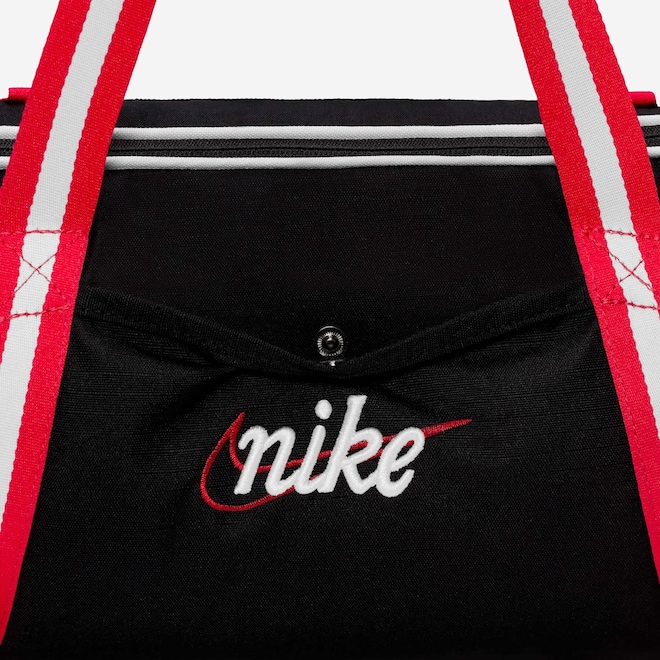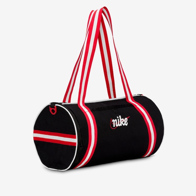Reviva o passado com estilo na academia ou saindo com os amigos nessa bolsa duffel com tema retrô. Ela apresenta um compartimento grande para armazenar as suas coisas do dia a dia, além de um bolso frontal menor para todos os seus itens essenciais. Essa bolsa também tem alças opcionais, ou você pode usar a alça ajustável no ombro.