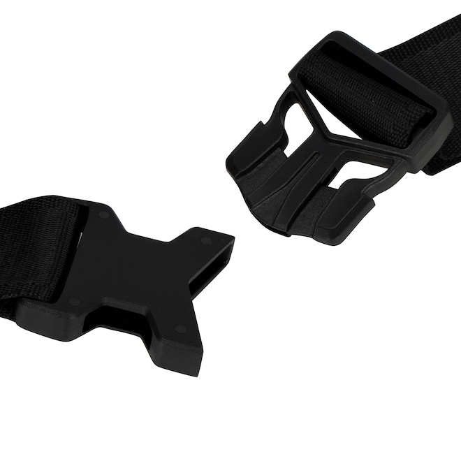 Já a alça é larga e regulável com fechamento seguro por fivela plástica de engate para o transporte na transversal
