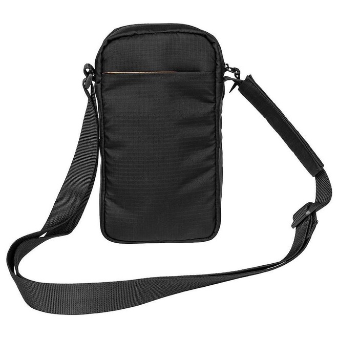 Bolsa pequena a tiracolo para uso diário ou pequenas caminhadas, possui compartimento frontal acolchoado para garrafa dágua ou squeeze. Com discreto bolso traseiro para celular, bolso interno e gancho para prender chave.