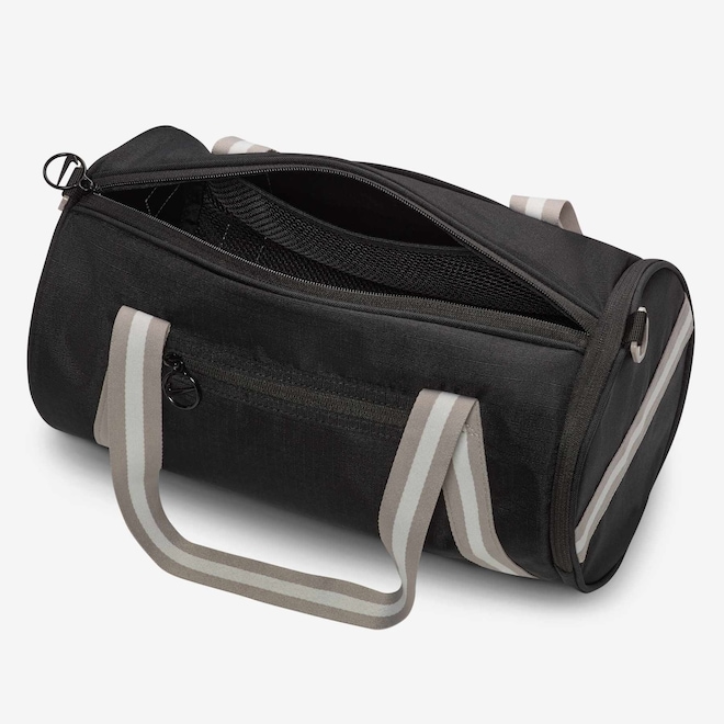 Reviva o passado com estilo na academia ou saindo com os amigos nessa bolsa duffel com tema retrô. Ela apresenta um compartimento grande para armazenar as suas coisas do dia a dia, além de um bolso frontal menor para todos os seus itens essenciais. Essa bolsa também tem alças opcionais, ou você pode usar a alça ajustável no ombro.