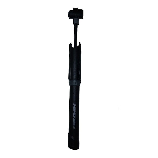 A bomba de ar High One mini é fabricada em nylon de alta resistência, possui mangueira de extensão da bomba facilitando o uso na bicicleta e é compatível com as válvulas Schrader (bico grosso) e Presta (bico fino).