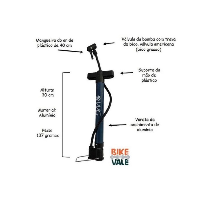 Bomba Pneu Bike de Pé Alumínio Cabo Plástico WG Sports