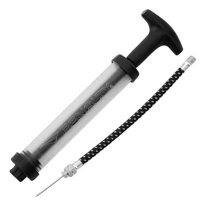 Produzido pela Penalty, a Bomba Sac é confeccionada com acrílico translúcido resistente, acompanha agulha e mangueira removível que garante o enchimento ideal de bolas e pneu de bicicleta.