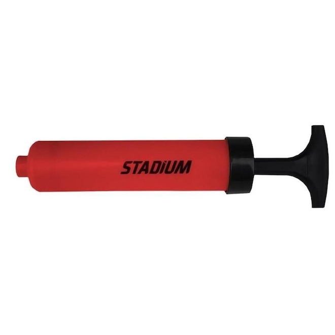 Compacta e resistente, a Bomba De Ar Stadium Simples Aç ã o é a companheira perfeita para você levar aos jogos. Conta com base resistente e tem funcionamento atravé s de aç ã o simples, tornando fá cil e rá pido o enchimento das bolas. Conta com mangueira e agulha, permitindo o enchimento de todos os tipos de bola. Seu design é de cor vermelha, e traz a base em cor preta. Medida aproximada da bomba: 15cm &ndash Medida aproximada da mangueira: 17cm. Referê ncia: 675477.