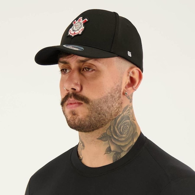 Boné Aba Curva Supercap Corinthians Escudo - Snapback - Adulto