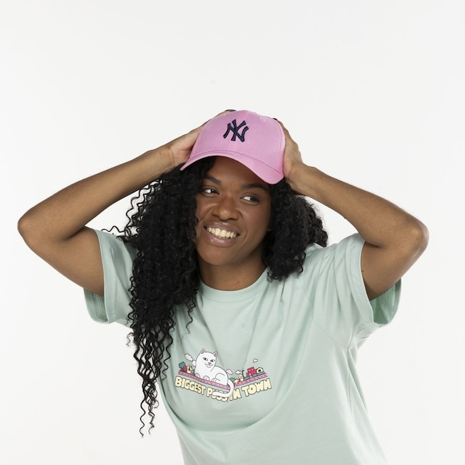 O design com aba curva e o logo dos Yankees garantem um estilo icônico e confortável.