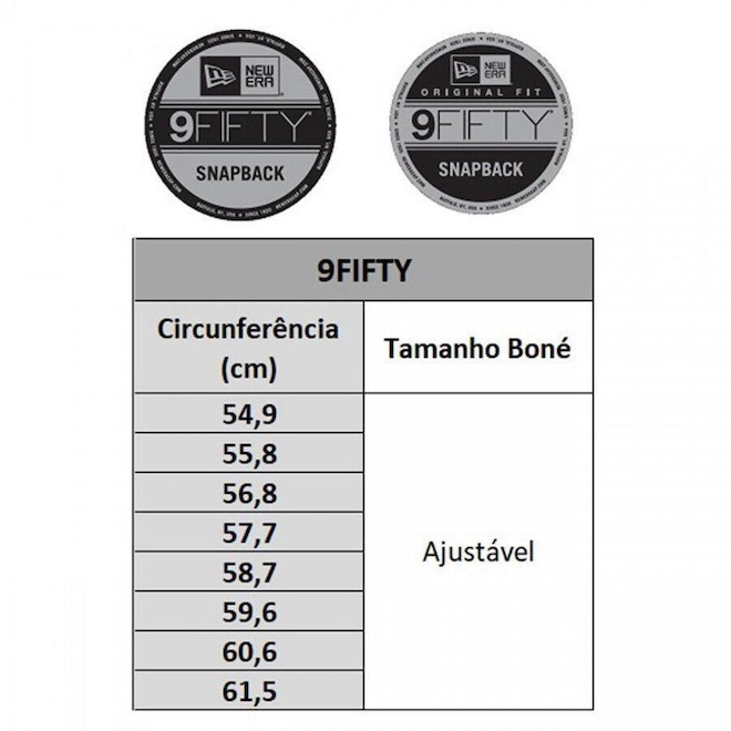 O 9FIFTY? Original Fit vem com a aba em um formato quadrado e mais curto, a copa do boné vem um pouco mais reta e o cap é mais raso, sendo um modelo FIT que não cobre as orelhas e tem as linhas mais retas.