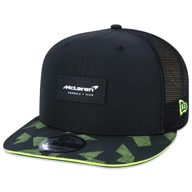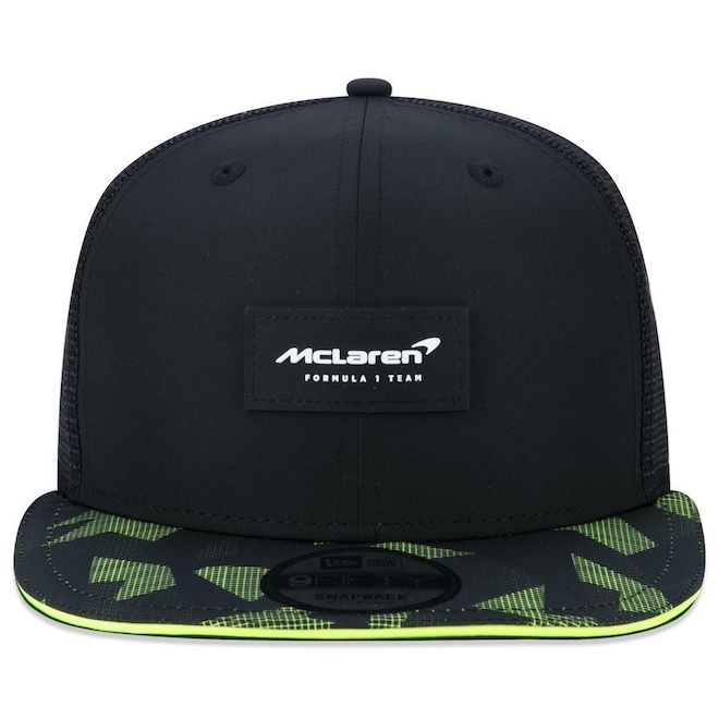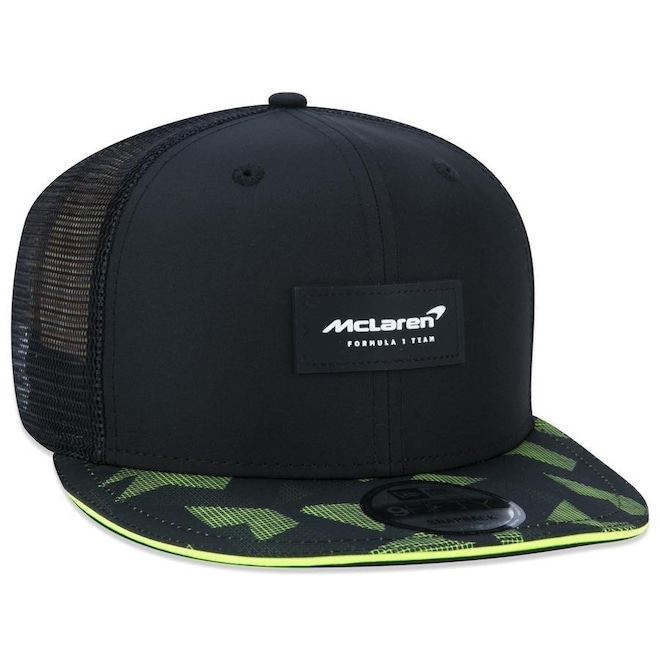 Bone 9FIFTY Trucker McLaren F1 Team Lando Norris Snapback Aba Pre Ajustavel Preto New Era
