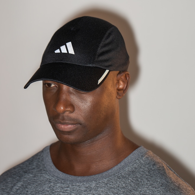 Tem aba curva, fecho strapback e a faixa interna é de tecido, além disso conta com detalhes refletivos. Compre agora mesmo o seu Boné adidas!