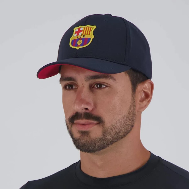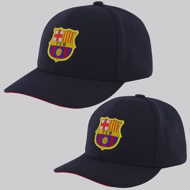 Contém: 02 peças (01 adulto e 01 infantil)Composição: 97% Poliéster e 03% Elastano (ambas as peças)Composição aba inferior: 100% Algodão (ambas as peças)Peso aproximado infantil: 110 gPeso aproximado adulto: 120 gCor predominante: Azul-marinhoProfundidade infantil: 15 cmProfundidade adulto: 16 cmAjuste: Pinos plásticosIndicado para: CasualOrigem: NacionalEscudo: BordadoClube: BarcelonaGênero: UnissexIdade: InfantilAba: CurvaTamanho único