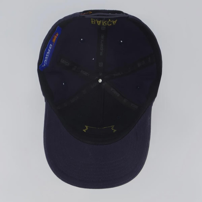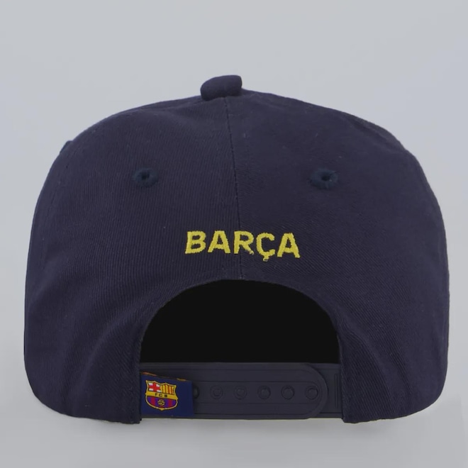 Composição: 100% AlgodãoCor predominante: Azul-marinhoAjuste: Pinos plásticosPeso aproximado: 100 gCircunferência aproximada: 62-64 cmClube: FC BarcelonaIndicado para: CasualProfundidade: 15 cmEscudo: BordadoOrigem: NacionalGênero: UnissexAba: CurvaTamanho único