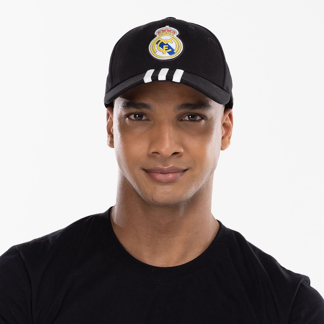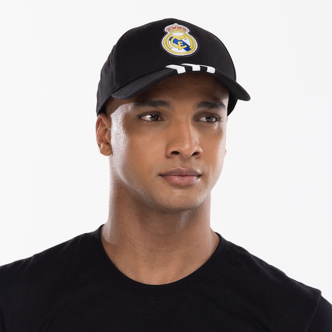Com aba curva, o escudo do Real Madrid em destaque e fecho strapback, oferece ajuste confortável e perfeito.