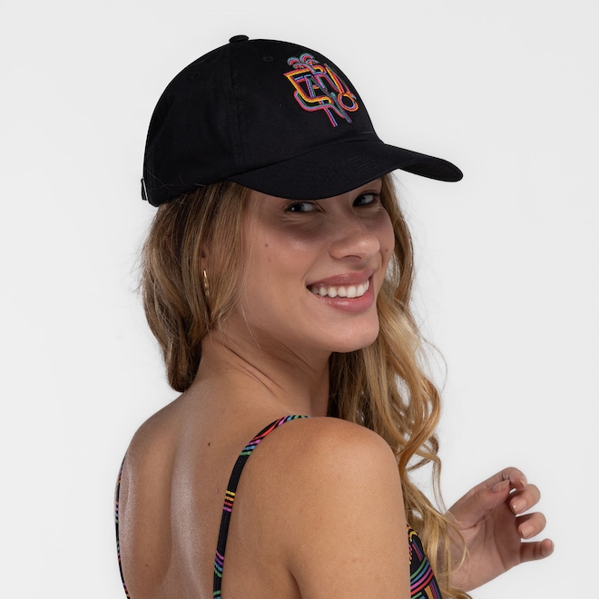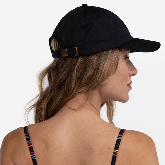 O ajuste strapback permite uma regulagem personalizada, proporcionando um encaixe perfeito.