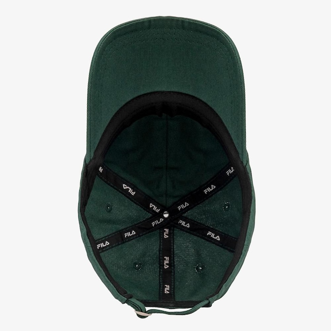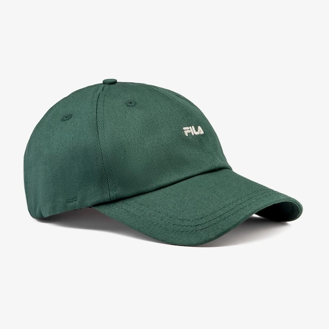 Boné DNA Letter Sport Life confeccionado em sarja de algodão. Possui aba curva com três níveis de costura, painel frontal desestruturado e ilhós bordado. O design é valorizado pelo logo FILA bordado e centralizado, adicionando autenticidade ao modelo. O fecho ajustável em tira reguladora com fivela de metal permite um ajuste preciso e um estilo versátil para diversas ocasiões.