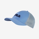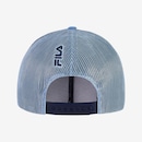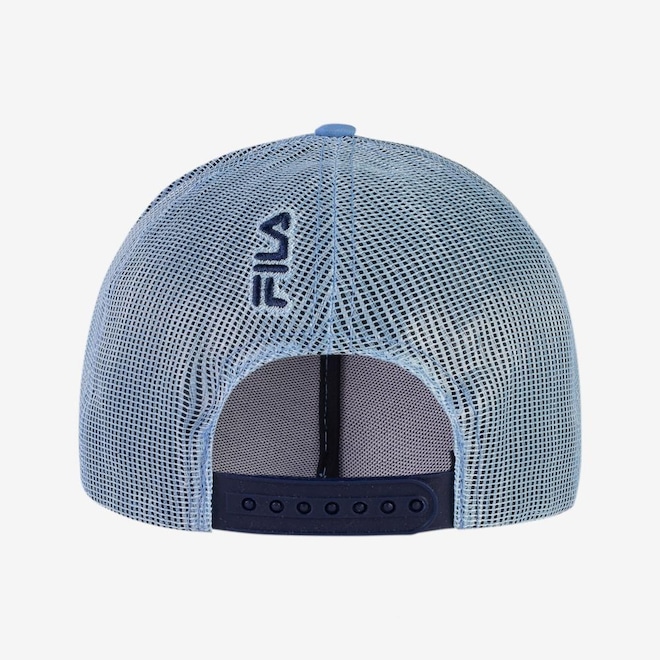 Boné confeccionado em 100% poliéster. Possui regulador de plástico na parte traseira, aba curva, logo Fila Letter bordado com alto relevo centralizado na parte frontal, tela de Mesh na parte traseira para maior respirabilidade e bordado Fila Letter vertical na parte traseira.