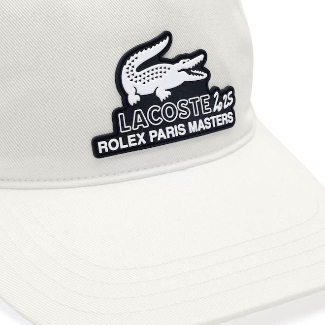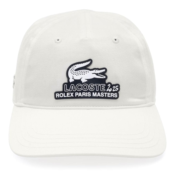 - Detalhamento: Boné com seis gomos não estruturado, ilhoses para maior respirabilidade, logotipo do Crocodilo bordado na lateral direita e fecho ajustável por contato. Destaque para o logo do Crocodilo e o logotipo do Rolex Paris Masters na parte frontal;