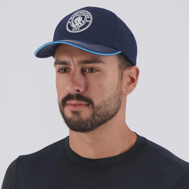 Composição: 100% AlgodãoCor predominante: MarinhoAjuste: Pinos de plásticoPeso aproximado: 90 gClube: Manchester CityIndicado para: CasualProfundidade: 16 cmEscudo: BordadoOrigem: NacionalGênero: UnissexAba: CurvaTamanho único