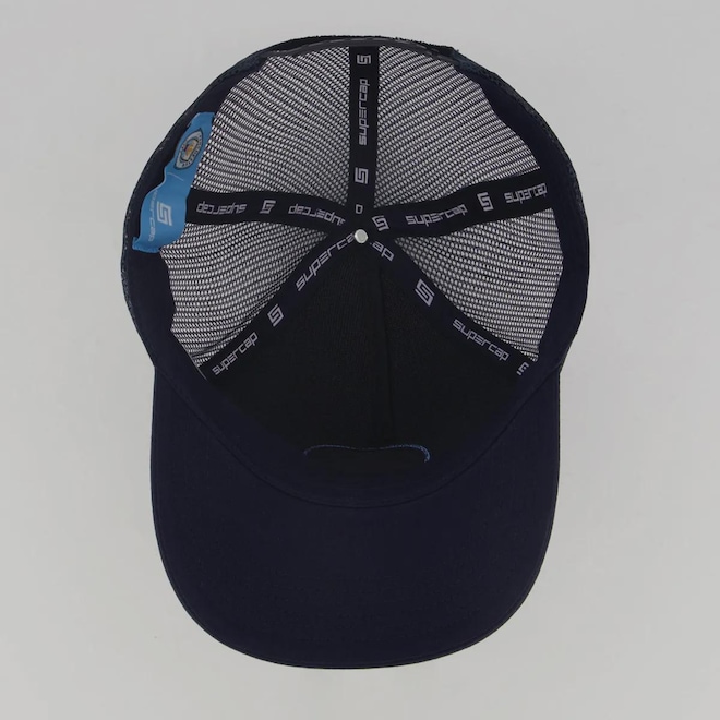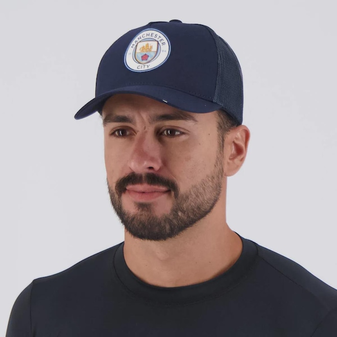 Composição frontal: 100% AlgodãoComposição tela: 100% PoliésterCor predominante: MarinhoAjuste: Pinos de plásticoPeso aproximado: 80 gClube: Manchester CityIndicado para: CasualProfundidade: 16 cmEscudo: BordadoOrigem: NacionalGênero: UnissexAba: CurvaTamanho único