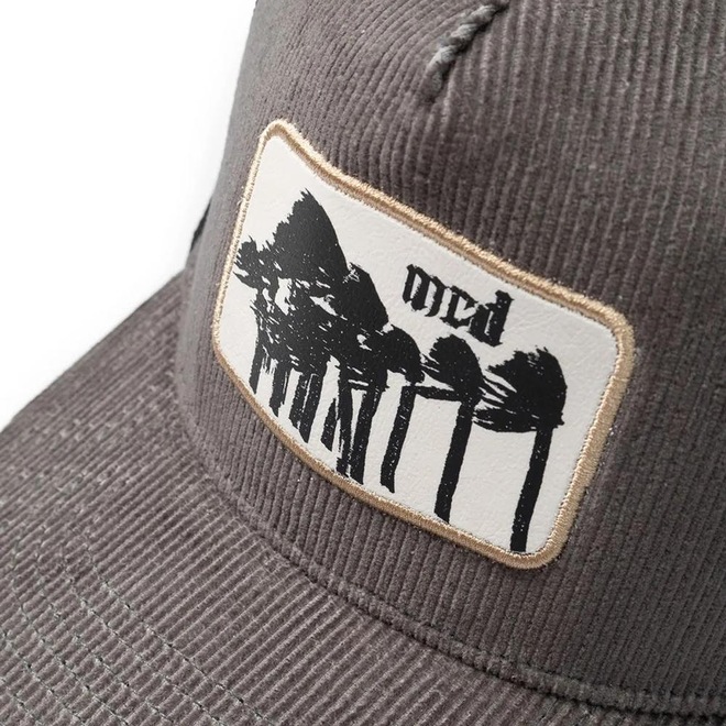 Boné Mcd feito em modelagem trucker, patch estampado MCD, ilhós bordado, botão encapado, etiqueta caps costurada no elástico, fita interna personalizada, ajustador de plástico, bordado espada do lado do ajustador e tag personalizado MCD.