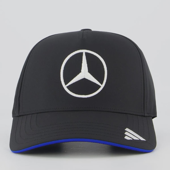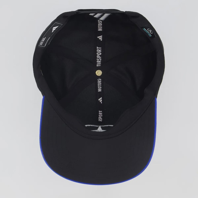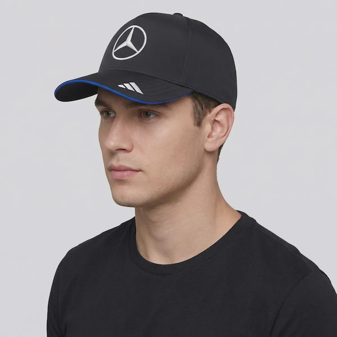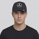 Escuderia: Mercedes AMG Petronas Composição: 100% Poliéster Cor predominante: Preta Ajuste: Pinos plásticos Indicado para: Casual Logo: Bordada Profundidade: 17 cm Circunferência aproximada: 60 - 63 cm Origem: Importada Gênero: Unissex Aba: Curva Tamanho M/G