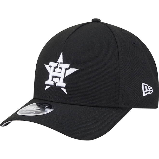 Este boné apresenta o logo bordado do Houston Astros nos painéis frontais, um fecho tipo Snapback na parte traseira e uma contra-aba cinza. A silhueta 9FORTY M-Crown tem uma copa ligeiramente mais alta a do 9FORTY original. O 9FORTY M-Crown A-Frame também possui uma aba mais curta e menos curva, proporcionando um visual mais moderno, além de um painél único frontal.