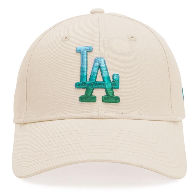 - Detalhamento: Boné de modelagem feminina na cor bege, composto por seis gomos sendo os dois frontais estruturados, bordado frontal com logo do time da MLB "Los Angeles Dodgers" em alto relevo metálido brilhante e colorido, logo da New Era bordado no mesmo estilo na lateral esquerda, aba curva flexível, fecho traseiro strapback ajustável;
