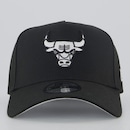 Composição: 100% Poliéster Cor predominante: Preta Ajuste: Pinos plásticos Indicado para: Casual Peso aproximado: 90g Profundidade: 18 cm Time: Chicago Bulls Origem: Nacional Escudo: Bordado Tamanho único Aba: Curva