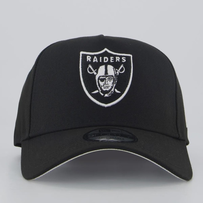 Composição: 100% Poliéster Time: Las Vegas Raiders Cor predominante: Preta Ajuste: Pinos plásticos Indicado para: Casual Peso aproximado: 90g Profundidade: 18 cm Origem: Nacional Escudo: Bordado Tamanho único Aba: Curva