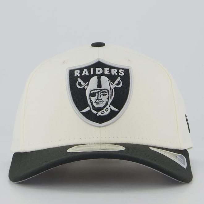 Composição: 95% Poliéster e 05% Elastano Time: Las Vegas Raiders Cor predominante: Off-white Circunferência aproximada: 62-66 cm Ajuste: Pinos plásticos Indicado para: Casual Peso aproximado: 110 g Profundidade: 16 cm Origem: Importada Escudo: Bordado Aba: Curva Tamanho único