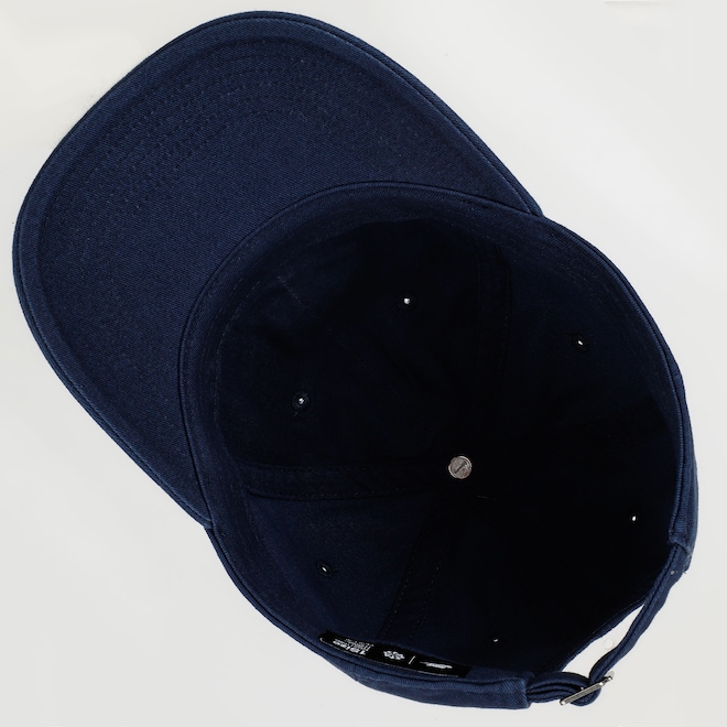 Conta com aba curva, fecho strapback e faixa interna em tecido.