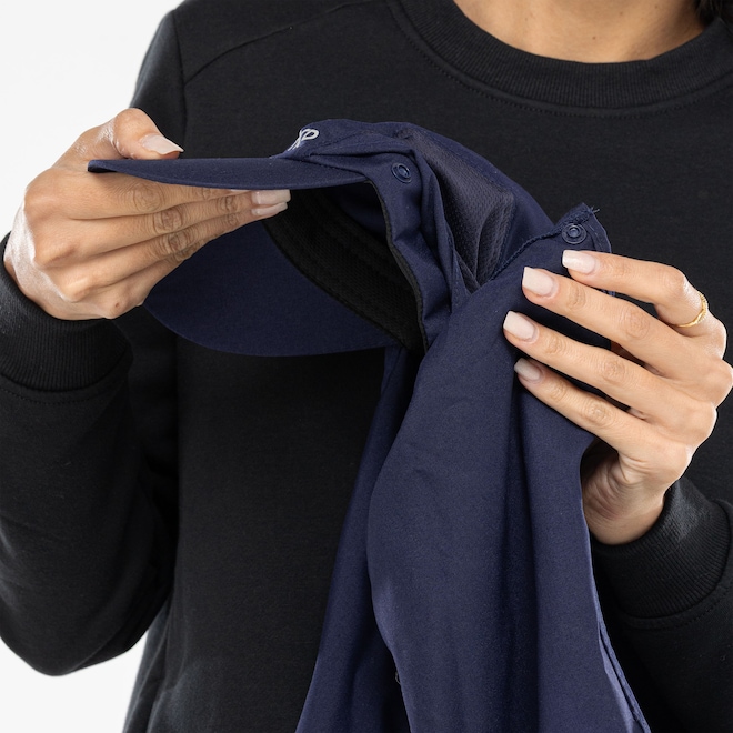 Com aba curva, fecho strapback e confeccionado em algodão com faixa em tecido, proporciona um ajuste perfeito e respirabilidade.