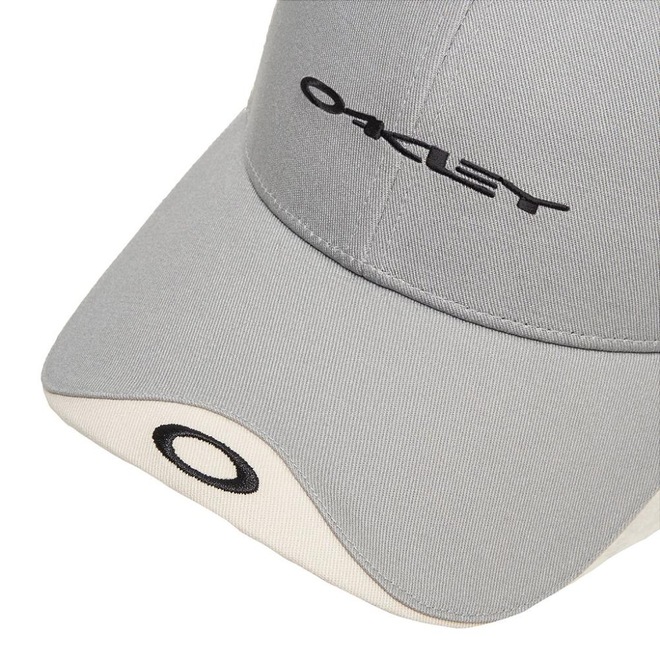 Boné Oakley de 6 painéis, feito em malha estruturada ventilada, logotipo esticado da Oakley bordado nos painéis, frontaise logotipo elipse da Oakley na aba e ajustável.
