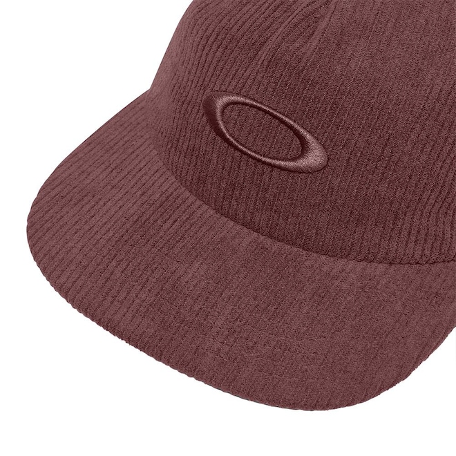 Boné Oakley de cinco painéis com coroa não estruturada, confeccionado em tecido cotelê, bordado em relevo do logotipo frontal da Oakley elipse na frente e ajustável.