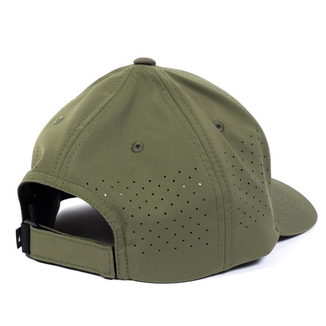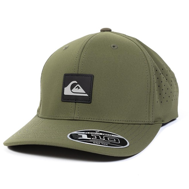 Boné QuikSilver feito em modelagem 6painel 1x10 Flex fit de aba curva, faixa anti suor por toda a circunfêrencia interna, patch de logotipo emborrachado centralizado no painel frontal, tecido de anfíbio repelente de água, bordado FLEXFIT aplicado ao longo da lateral direita, painéis traseiros perfurados e fechamento e regulagem em strapback.