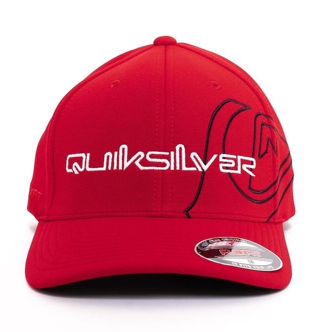Boné QuikSilver feito em modelagem 6painel Flexfit, faixa anti suor por toda a circunferência interna, bordado assinatura aplicado e bordado da logo no painel frontal, aba interna seguindo a cor do bordado, bordado FLEXFIT aplicado ao longo da lateral direita e etiqueta localizada na barra traseira.