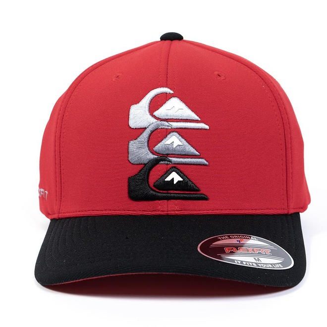 Boné QuikSilver feito em modelagem 6painel Flexfit, faixa anti suor por toda a circunferência interna, bordado 3 logos em degradê com transfer contrastante aplicado no painel frontal, aba interna contrastante, bordado FLEXFIT aplicado ao longo da lateral direita e etiqueta localizada na barra traseira.