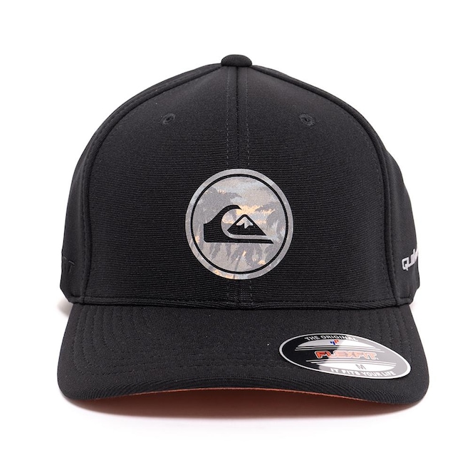 Boné QuikSilver feito em modelagem 6painel Flexfit, faixa anti suor por toda a circunferência interna, transfer refletivo da logo sublimada centralizado no painel frontal, aba interna contrastante, transfer refletivo assinatura aplicado ao longo da lateral esquerda, bordado FLEXFIT aplicado ao longo da lateral direita e etiqueta localizada na barra traseira.