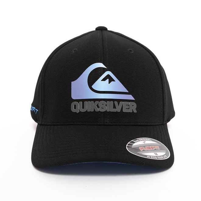 Boné QuikSilver feito em modelagem 6painel Flexfit, faixa anti suor por toda a circunferência interna, transfer refletivo da logo e assinatura sublimada centralizado no painel frontal, aba interna contrastante, transfer refletivo assinatura aplicado ao longo da lateral esquerda, bordado FLEXFIT aplicado ao longo da lateral direita e etiqueta localizada na barra traseira.