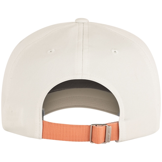 Tem aba curva, seu fecho é strapback e tem faixa interna em tecido.