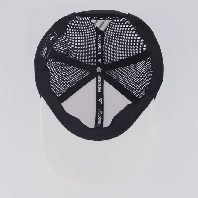 Composição exterior frontal: 92% Poliéster e 8 % Elastano Composição exterior traseira: 100% Poliéster Composição fita de transpiração: 100% Poliéster Composição forro: 100% Poliéster Composição visor: 100% Poliéster Cor predominante: Branco Peso aproximado: 120g Indicado para: Casual Ajuste: Pinos plásticos Profundidade: 16 cm Origem: Importado Logo: Bordado Aba: Curva Tamanho único