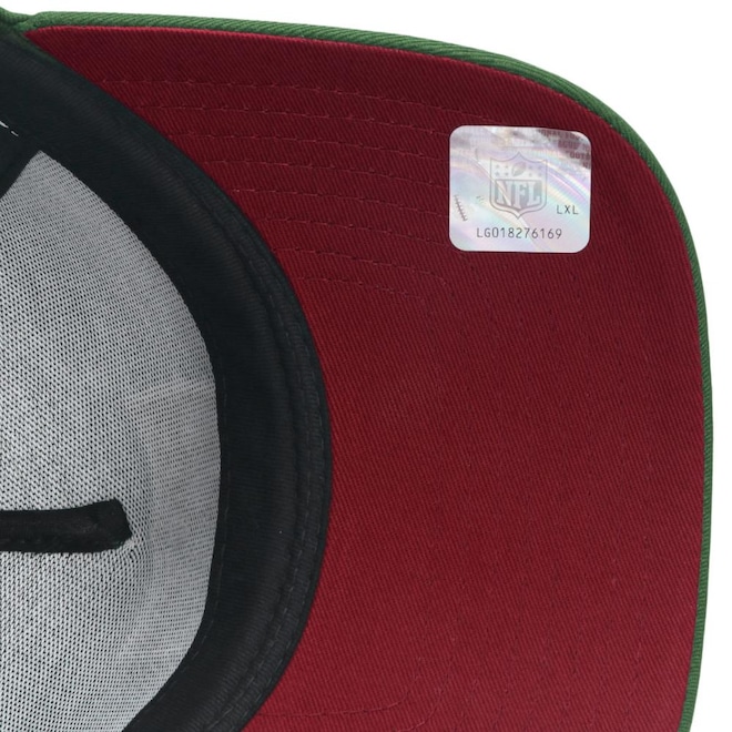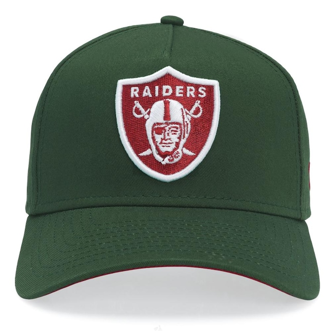 - Detalhamento: Tamanho único composto por cinco gomos sendo o frontal estruturado, logo frontal do time da NFL Las Vegas Raiders bordado em alto relevo, logo da New Era em uma das laterais, aba curva flexível e fecho traseiro snapback ajustável;