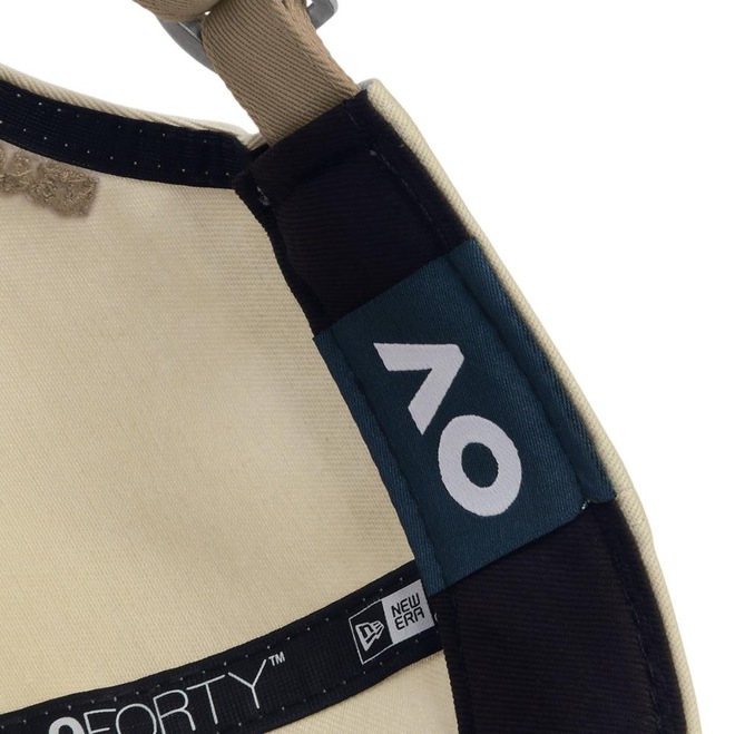 - Detalhamento: Tamanho único, com seis gomos, sendo o dois frontais estruturado e os demais em tecido maleável com pontos de ventilação para maior respirabilidade. Apresenta o logo frontal AO (Australian Open) bordado em alto relevo, garantindo autenticidade, e o logo da New Era bordado na lateral, reforçando o design icônico da marca. Possui aba curva, flexível, em tom bege levemente mais escuro. Fecho traseiro ajustável que se adapta perfeitamente, oferecendo conforto e um visual moderno dentro e fora das quadras. Detalhe exclusivo com a escrita Australian Open bordada na parte traseira;