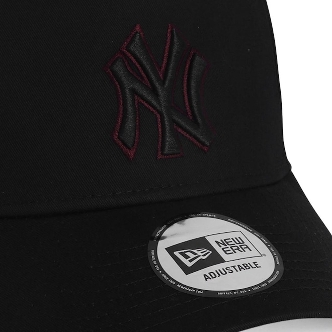 - Detalhamento: Composto por seis gomos, logo frontal com as letras "NY" em alto relevo, logo na New Era em uma das laterais, aba curva flexível, fecho traseiro snapback ajustável;