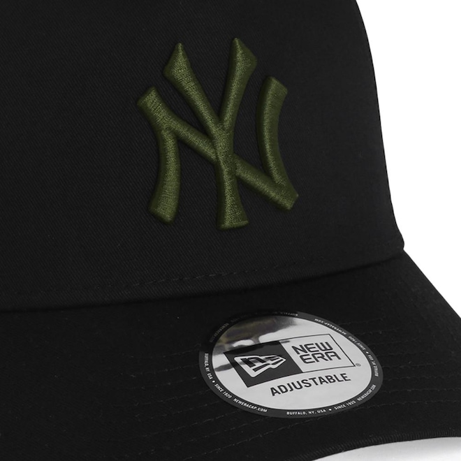 - Detalhamento: Composto por seis gomos, sendo os dois frontais estruturados e quatro traseiros em tela para maior respirabilidade. Bordado frontal com o logo NY em alto relevo e cor contrastante, além do logo da New Era bordado na lateral esquerda no mesmo estilo. Aba curva flexível e fecho traseiro ajustável;