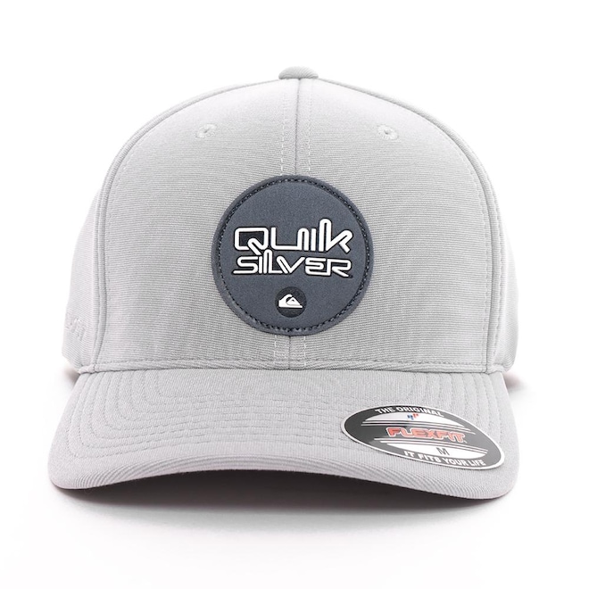 Boné QuikSilver feito em modelagem 6 painel Flexfit, faixa anti suor por toda a circunferência interna, patch da logo soldado no suede centralizado no painel frontal, aba interna lisa, bordado FLEXFIT aplicado ao longo da lateral direita e etiqueta localizada na barra traseira.