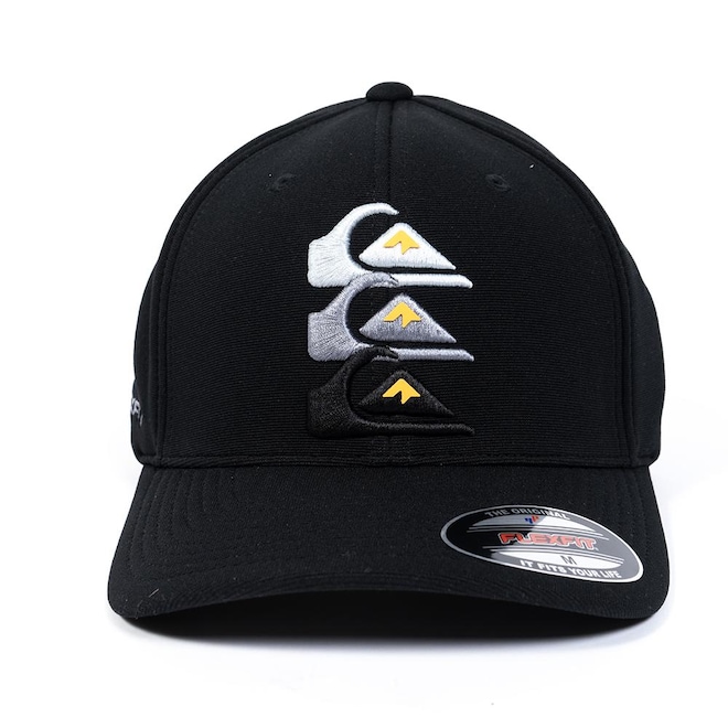 Boné QuikSilver feito em 6painel Flexfit, faixa anti suor por toda a circunferência interna, bordado 3 logos em dregradê com transfer contrastante aplicado no painel frontal, aba interna contrastante, bordado FLEXFIT aplicado ao longo da lateral direita e etiqueta localizada na barra traseira.