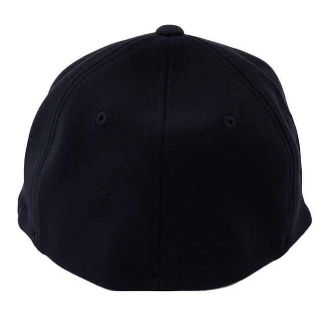 Boné Flexfit de aba curva, 6 pannel, em tecido ottoman, logo em placa metálica preta, bordado flexfit na lateral e etiquetas personalizadas.