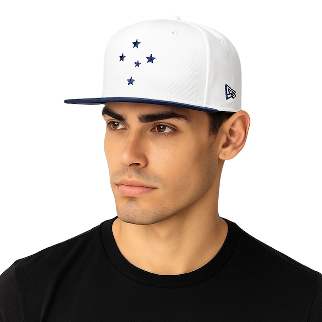Boné oficial do Cruzeiro modelo 9Fifty Original Fit da New Era. Desenvolvido para os torcedores que valorizam estilo e tradição, o boné traz o logo das estrelas do Cruzeiro em destaque na parte frontal. A peça apresenta aba reta em formato quadrado, copa ligeiramente reta e mais rasa, sendo um modelo fit que não cobre as orelhas. Fabricado em poliéster resistente, possui vias respiráveis que ajudam na ventilação e costuras reforçadas que aumentam sua durabilidade. O fechamento ajustável com pinos garante um encaixe prático e confortável. Um acessório indispensável para os apaixonados pela Raposa.